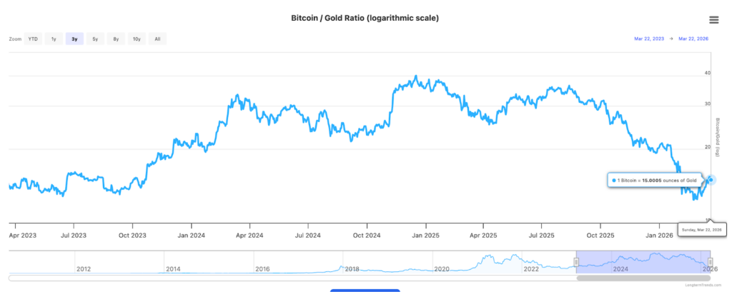 The BTC/Gold ratio has remained remarkably steady amid current volatility, a stark divergence from the correlation patterns that dominated 2022, when BTC tracked danger property decrease alongside equities. Fortune information confirms Bitcoin’s restoration to $71,043 is happening in an atmosphere the place conventional risk-on property stay below stress, suggesting the decoupling thesis is gaining structural help reasonably than simply narrative momentum.