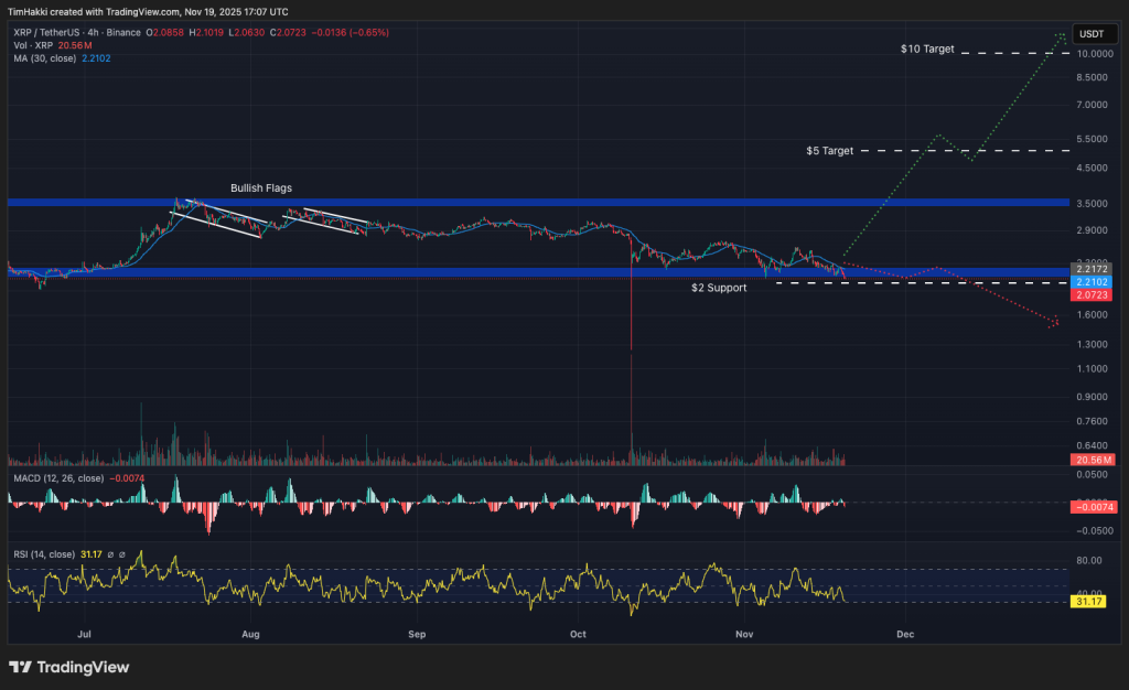 Technically, XRP has been in a decent consolidation sample since midyear, forming a collection of bullish flags with out the anticipated breakouts.