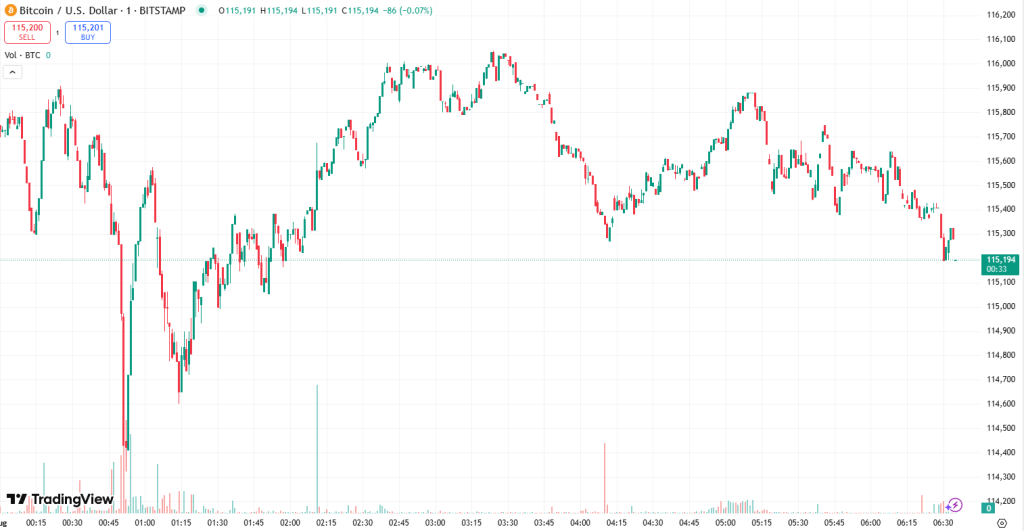 At the time of writing on Thursday morning, BTC trades at $115,555. It fell sharply from $118,696 and below the $115,000 mark to $114,980. It recovered somewhat since.