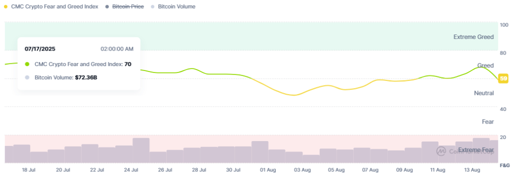 Meanwhile, the crypto market sentiment has reentered the neutral zone. The crypto fear and greed index recorded a sharp decline from 68 yesterday to 59 today.