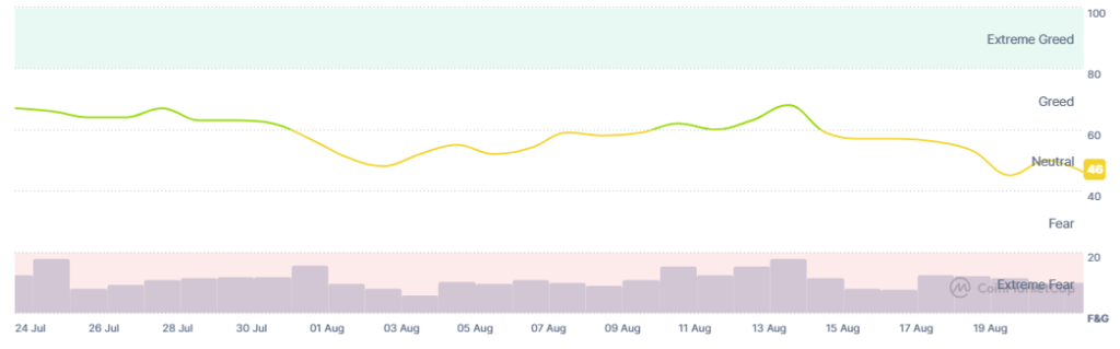 In the meantime, as of 21 August, the US BTC spot exchange-traded funds (ETFs) recorded a fifth day of damaging flows, with $194.32 million.