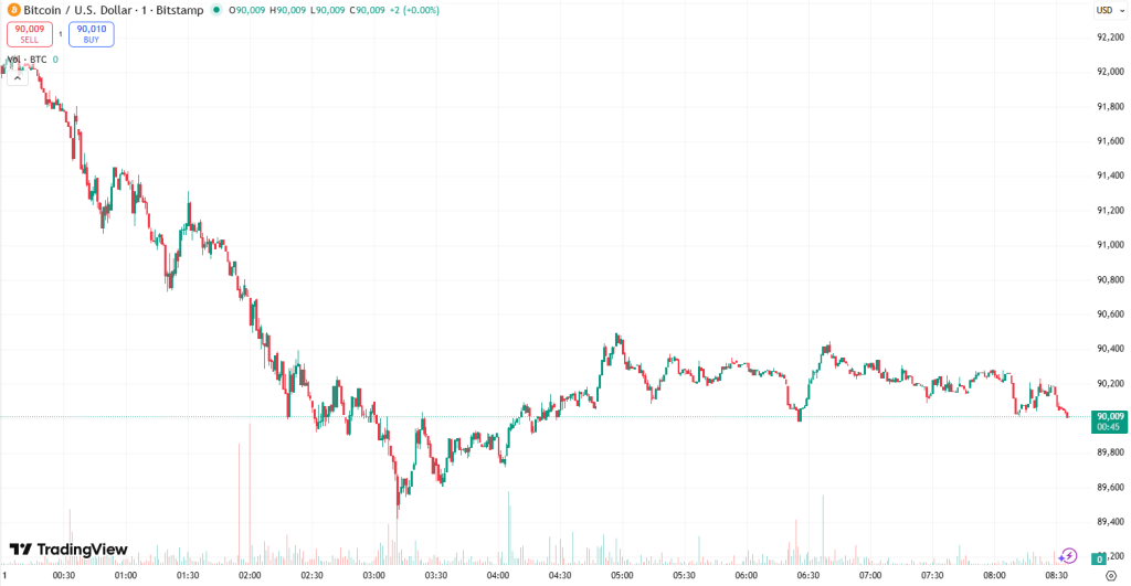 At the time of writing on Thursday morning, BTC stood at $90,051. For the primary a part of the day, it moved sideways earlier than leaping to the intraday high of $94,177 earlier than swiftly dropping to the intraday low of $89,623.