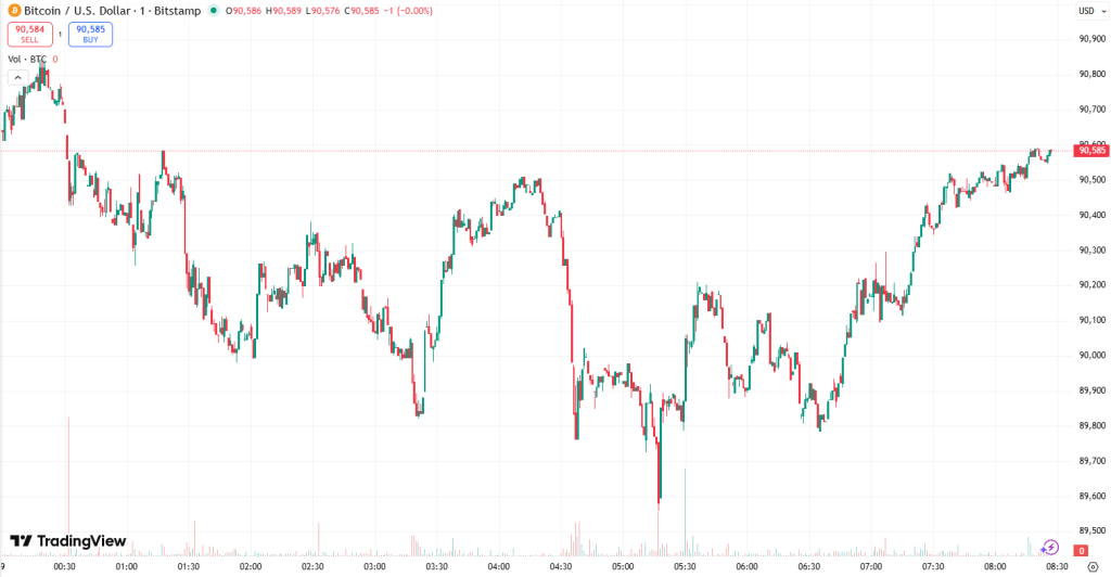 At the time of writing on Tuesday morning, BTC stood at $90,480. There was a notable plunge earlier within the day from the intraday high of $92,203 to the low of $89,735. It then recorded one other smaller peak at $91,353 earlier than pulling again to the present worth.