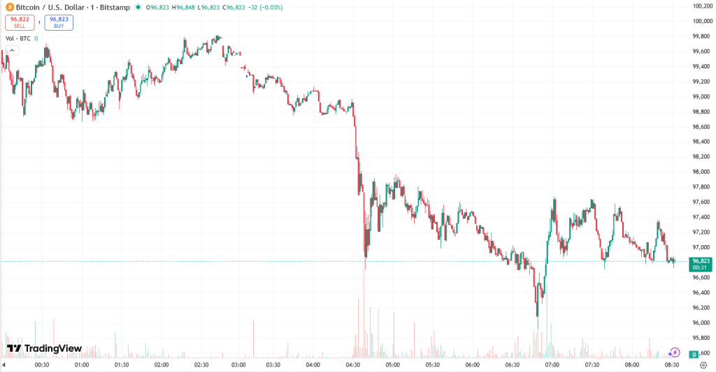 At the time of writing on Friday morning, BTC fell under the $100,000 mark and to the $96,000 stage, now standing at $97,033.