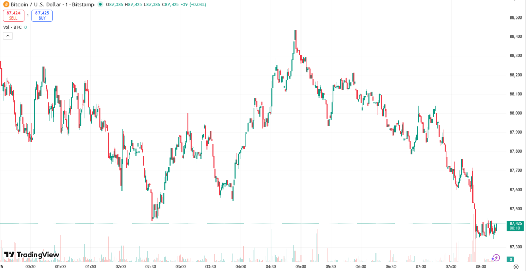 At the time of writing on Tuesday morning, BTC stood at $87,692. The value rose from the intraday low of $85,545 to the high of $89,111. It has corrected considerably since.