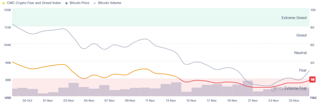 In the previous week, the worth moved between $82,175 and $92,032. It’s nonetheless down 0.7% on this timeframe. It’s additionally down 20% in a month and 27.3% from the all-time high.