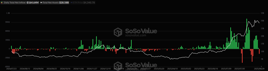 As of 29 August, spot BTC ETFs stand at $54.24 billion in whole, whereas spot ETH ETFs’ whole internet influx reached $13.51 billion.