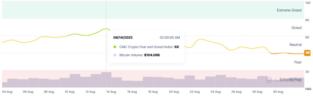 Notably, the crypto market sentiment nonetheless stands throughout the concern zone. The crypto concern and greed index remained unmoved, standing at 39 today.