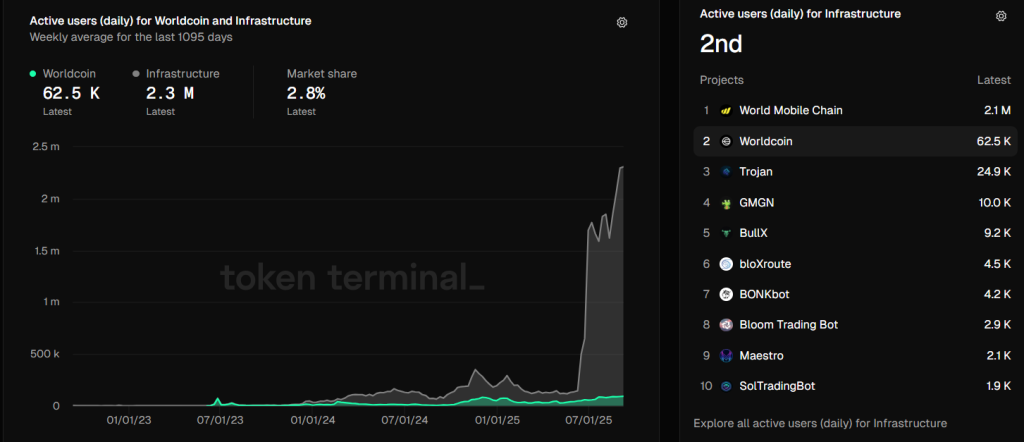Fundamentals facet, adoption is exploding. Worldcoin not too long ago hit an all-time high in lively customers, with deployments rolling out throughout all of LATAM, Asia, Africa, and the U.S. Key companions like Razer, Match Group, and a number of other metropolis governments already obtained on board.