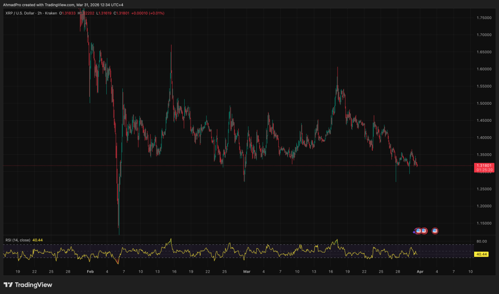 The on-chain divergence is the actual rigidity right here. Whale wallets collected roughly 40 million XRP in March whilst US-listed XRP spot ETFs – now holding a mixed $1.02 billion in belongings – recorded $30.12 million in internet outflows over the identical interval.