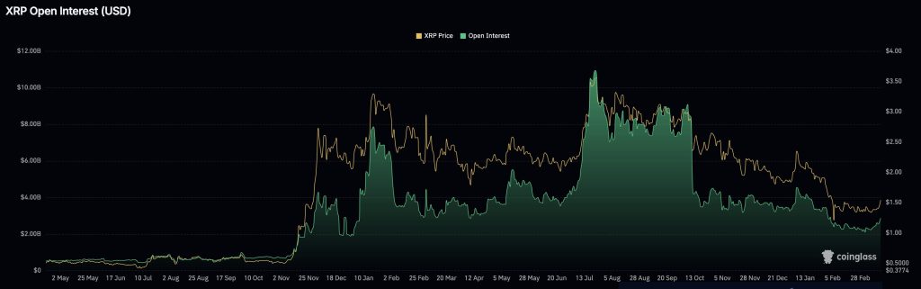 Coinglass knowledge places XRP open curiosity on Binance at 353.49 million XRP as of March 17. Back in October it was sitting at 222.79 million. That is a big rebuild.
