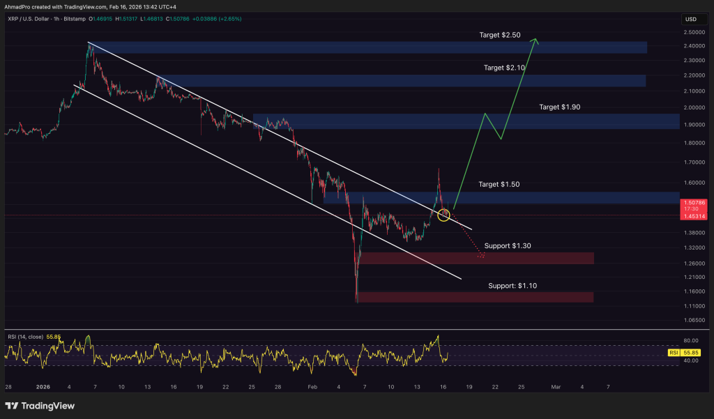 XRP worth is sprinting. Since the February 6 low, the token has ripped about 38% to $1.55. Meanwhile, Bitcoin and Ether are crawling with positive factors nearer to fifteen%.