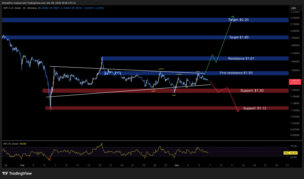 On the draw back, $1.30 stays the security internet. Buyers have defended it repeatedly. If that degree breaks, the construction falls aside and the chart probably rotates towards the $1.12 assist zone.